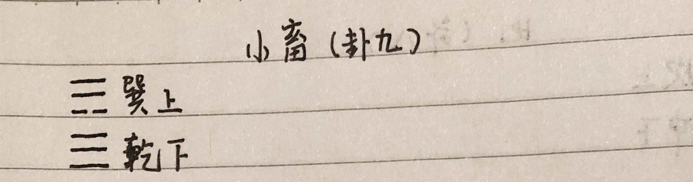 小畜底下是乾卦,上方是巽卦,所以又可以記為——風(fēng)(巽)天(乾)小畜。